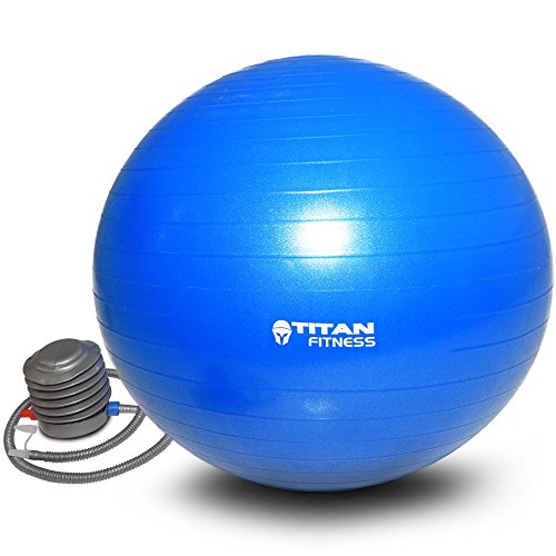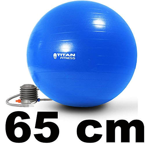 Studio : Titan Fitness Publisher : Titan Fitness Binding : Misc. Product Description The Titan Fitness stability exercise ball is just what you need to strengthen and tone your abs, core, and back. Sit on it at work or at home to improve your posture and strengthen your legs. Use it when you exercise at home or the gym for a variety of balance, strength, and flexibility moves, either on the floor or while standing. Groundwork exercises include Swiss ball crunches, plank holds, push ups and reverse extensions. Standing exercises include squats, lunges, hip circles and more! This blue 65 cm ball, which also comes in black, is suitable for people between 5'5" and 5'11" tall; check out our 55 cm ball if you are between 4'11" and 5'4". Pregnant women will also enjoy this as it can improve flexibility and relieve tightness.