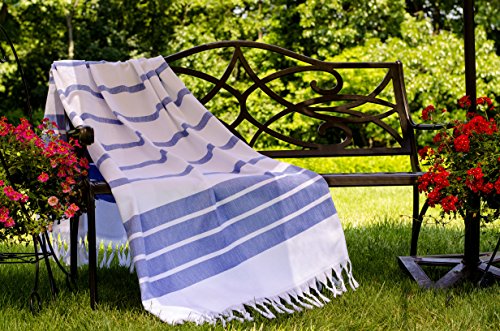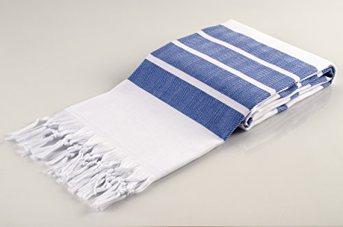 Luxury Herringbone Peshtemal, 100% Geniune Turkish Cotton, 39 by 74 inches, High-end Traditional Turkish Towel (Navy Blue)