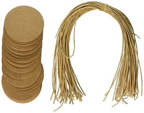 Wrapables 50 Gift Tags/Kraft Hang Tags with Free Cut Strings for Gifts/Crafts and Price Tags, Circle