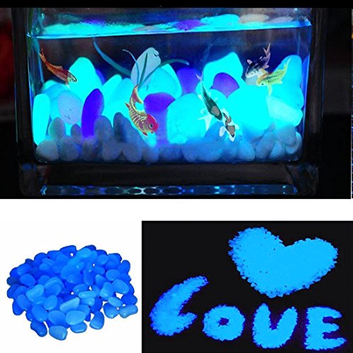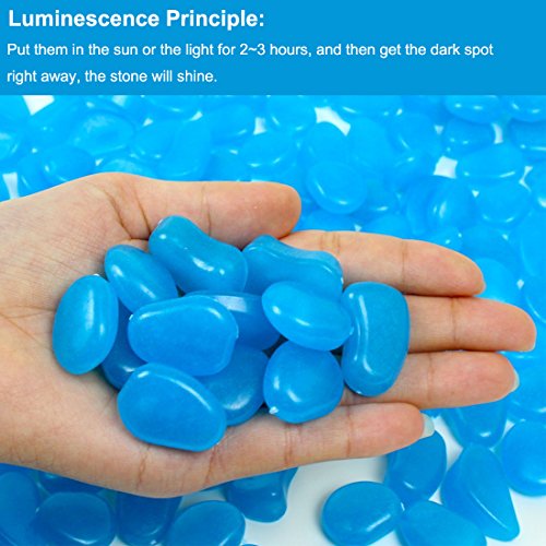 Glow in the Dark Stones, 200pcs Blue Garden Pebbles Rocks for Outdoor, Walkway, Garden Path, Yard Grass, and Fish Tank Decoration