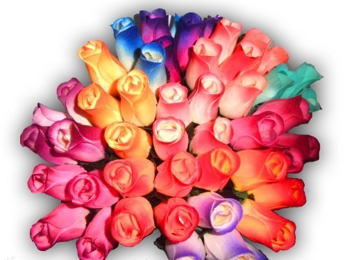2 Dozen 24 Mixed Color Bouquet of Wooden Rose Buds Artificial Flower by Wooden Roses