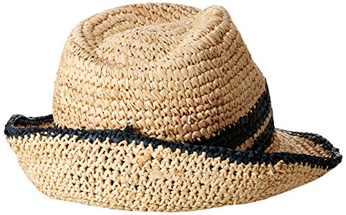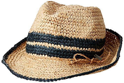 Fashion raffia straw fedora hat with novelty stripe band, Roxy metal plate.
