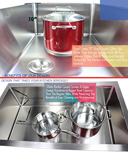Vibrant Brushed stainless steel finish matches perfectly with professional style appliances and ideally complements stone, quartz, and solid surface Countertops