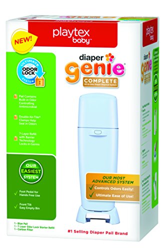 Looking for a sweeter smelling nursery? Look no further than Diaper Genie Complete Diaper Pail, with the Ultimate Odor Lock system. The Diaper Genie Complete Diaper Pail features a 7-layer refill bag, Air-Tite clamp, and new front tilt for easy empty bin experience. Built-in activated carbon filters—the simple, effective way to help keep your nursery fresh, helps to absorb and lock in strong diaper odors. Our design makes dirty diaper disposal quick and easy and prevents odor unlike an ordinary pail and plastic bag. In fact, the Diaper Genie Diaper Pails are the #1 selling diaper pail brand.Feature