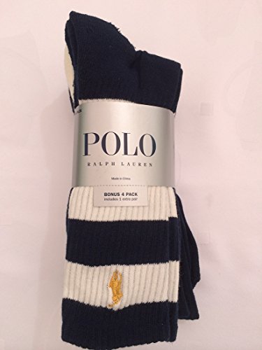 Polo Ralph Lauren Men's 4 Pairs/Pack Athletic Crew Socks Navy/White