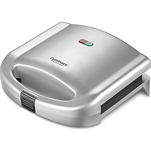 The Cuisinart Sandwich Grill does more than lunch. This versatile Cuisinart product also makes omelets and French toast! Designed to grill two items at a time, it is perfect for breakfast, lunch, or light dinners. Dual indicator lights ensure nothing over- or under-cooks, and nonstick plates eliminate the need for added butter or oil. A lock-down lid guarantees both sides cook evenly, and raised ridges on plates seal in ingredients. When the work is done, the lid lock and cord wrap make storage easy. Features Grills 2 sandwiches, omelets or servings of French toast Lock-down lid positions plates to evenly grill both sides Ready to cook and Ready to eat indicator lights Raised ridges in cooking plates seal edges of bread or omelets to keep ingredients inside Nonstick baking plates wipe clean in seconds Deep pockets Cord storage 90 Day Refurbished WarrantyFeature