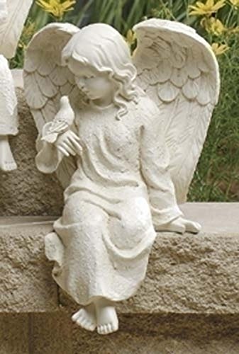 8.75" Inspirational Statuary Sitting Cherub Angel and Bird Outdoor Garden Statue