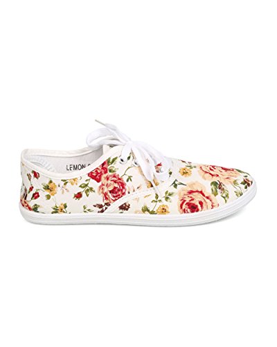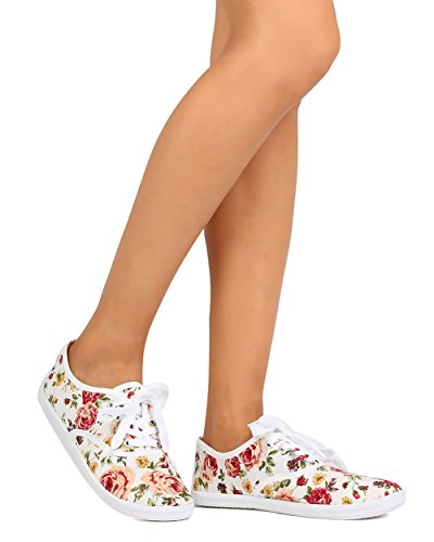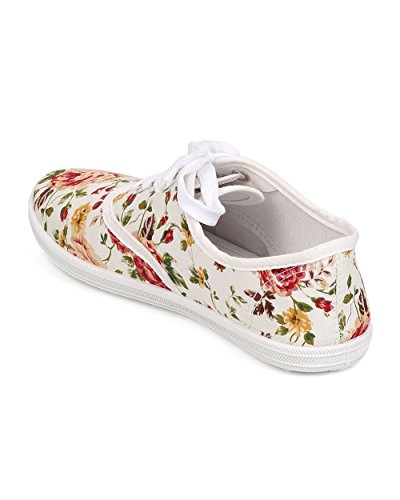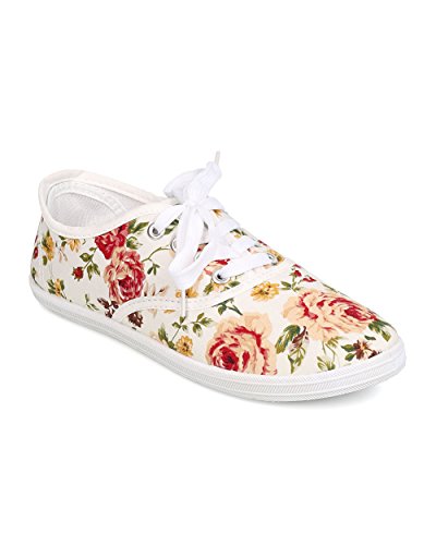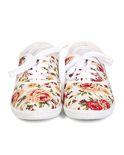 Refresh FA27 Women Canvas Floral Lace Up Flat Sneaker - White