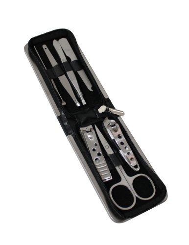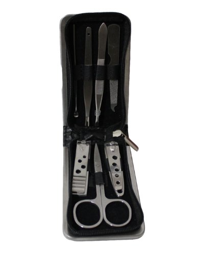 Nail Clippers, Cuticle Trimmer, Safety Scissors, Nail File, Nail Cleaner, Earpick and Eyebrow Tweezer are included.