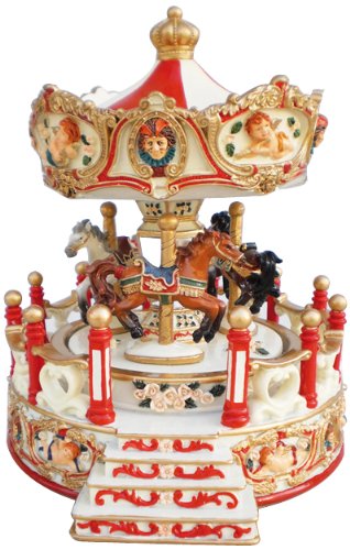 MusicBox Kingdom 14198 Carousel Angel with Porch Music Box Playing "Moonlight Sonata", Red