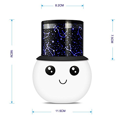 - 【Amazing Starry Light Show】:Give you a romantic sweet nursery baby night lamp companion, Projects a map of the colorful stars onto your ceiling and walls with this new starlight projector. Bring the Night Sky home to you,give you star,moon,Twelve Constellation,you may feel as if camping in the field