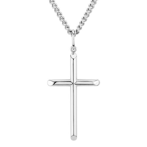 -. Title : Sterling Silver Polished Tubular Cross Pendant
