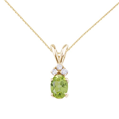 -. Title : 14K Yellow Gold Oval Peridot and Diamond and 18" Chain
