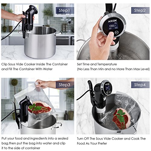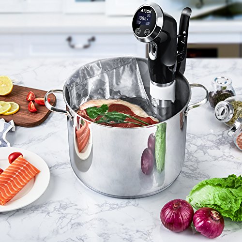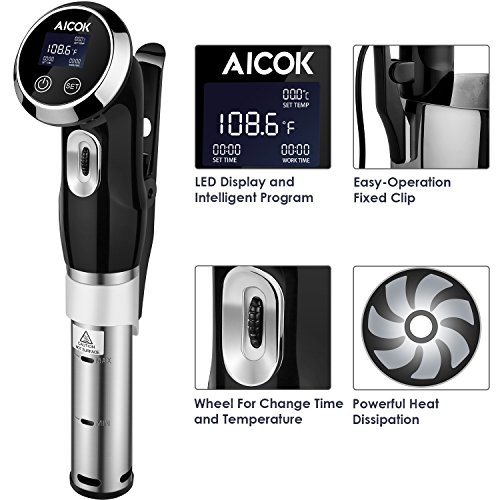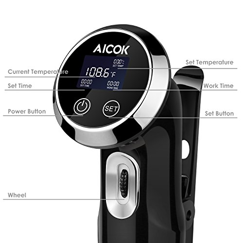 Aicok Sous Vide Precision Cooker Powerful 1000W Immersion Circulator with Accurate Temperature Control Digital Timer Display Stainless steel, Black