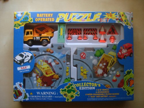-. Title : Fire Truck/Pirate Ship/ Construction Truck -Puzzle Vehicle Track Set- 16 PCS Battery Operated