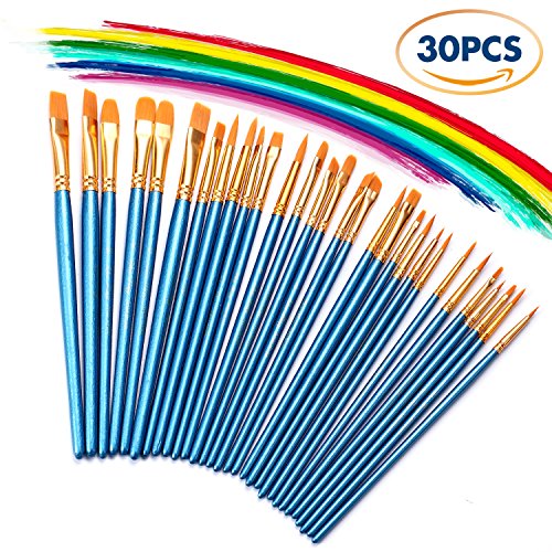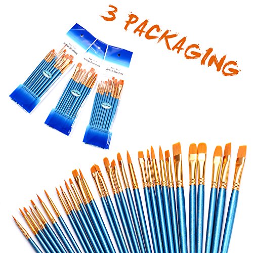 3 Pack Paint Brush Set, 30 pcs Nylon Hair Brushes for Acrylic Oil Watercolor Painting Artist Professional Painting Kits