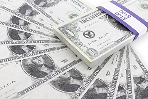 REALISTIC PROP MONEY: Looks just like real American money! Set includes one stack of 100 fake one dollar crisp bills with realistic designs and ink tones.