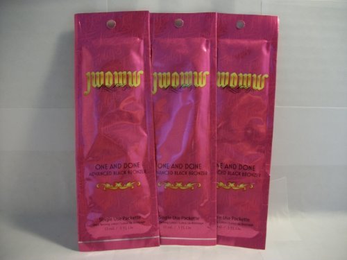 -. Binding : Misc. -. Brand : Jwoww -. Feature : Advanced DHA and black walnut bronzers / Yogurt base, pear and black currant oils for smooth skin / Vitamin E and shea butter keep your skin looking young and vibrant / Essential oils moisturize skin / After tan odor eliminators -. Label : Australian Gold -. Manufacturer : Australian Gold -. ProductGroup : Beauty -. ProductTypeName : BEAUTY -. Publisher : Australian Gold -. Size : 0.5 Ounces -. Studio : Australian Gold -. Title : 3 packets JWOWW One and Done Advanced Black Bronzer .5oz
