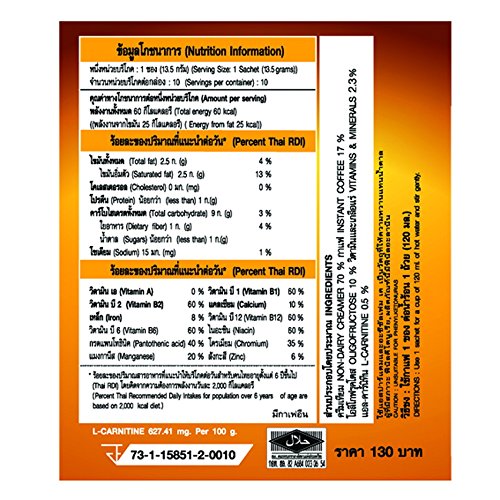 -. Feature : Naturegift Instant Coffee Mix 21 Plus L-carnitine Slimming Weight Loss Diet / Instant Coffee powder with Vitamins, Minerals, Oligofructose and L-carnitine / No cholesterol, Low Fat, Usage of the sweetener instead of sugar. / Contain 10 Sachets 0f box. N.W. 135g / Thailand beverage Better