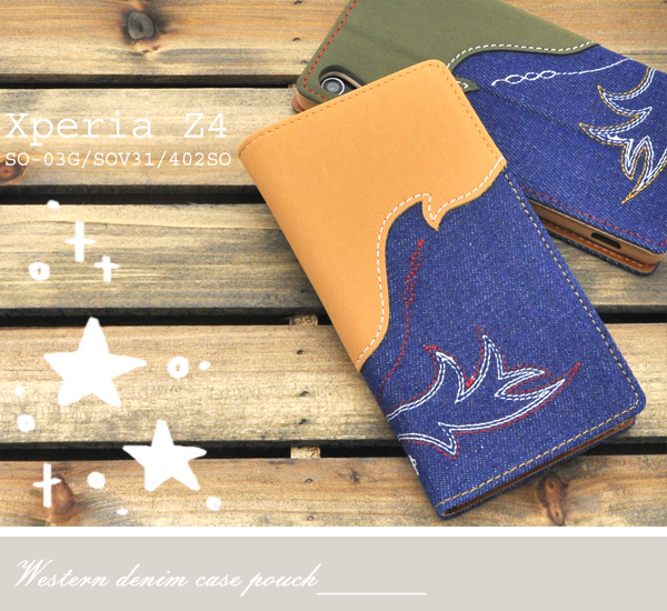 | Xperia Z4(SO-03G/SOV31/402SO)用ウエスタンデニムケースポーチ | | |