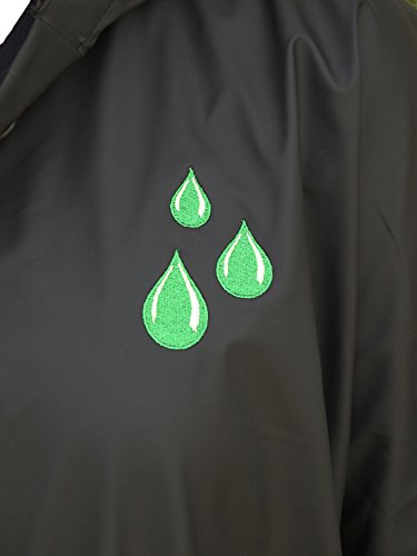 - Feature : Features embroidered colorful raindrop detail / Made from waterproof New Englander Polyurethane bonded to a knit backing / Heat-sealed seams and side snap closure under arms / Hood with snap neck & drawstrings for extra protection / One size fits all, dimensions 52" x 80"