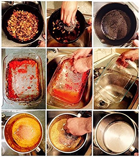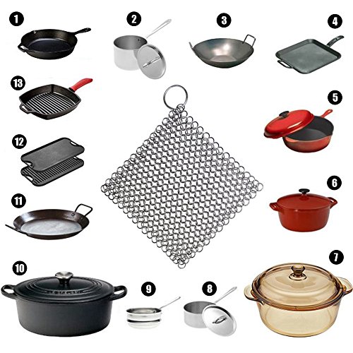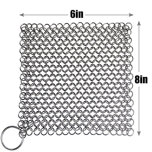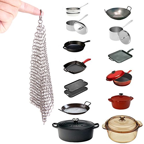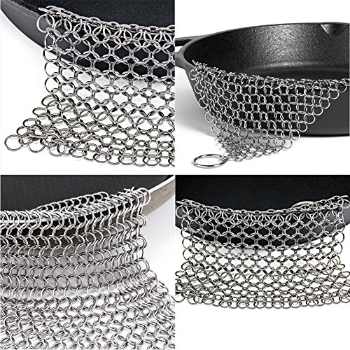 PREMIUM QUALITY & DURABILITY- Be handcrafted with premium grade 316L stainless steel and provides better sorrosion resistance than other iron scrubber which is made of ordinary 304 stainless steel. Unlike other chainmail scrubbers this cast iron cleaner is precisely HANDCRAFTED into a smooth circular shape to limit cookware abrasion and maintain surface finish & seasoning. Each ring is smooth welded for much more sturdy and longtime use.