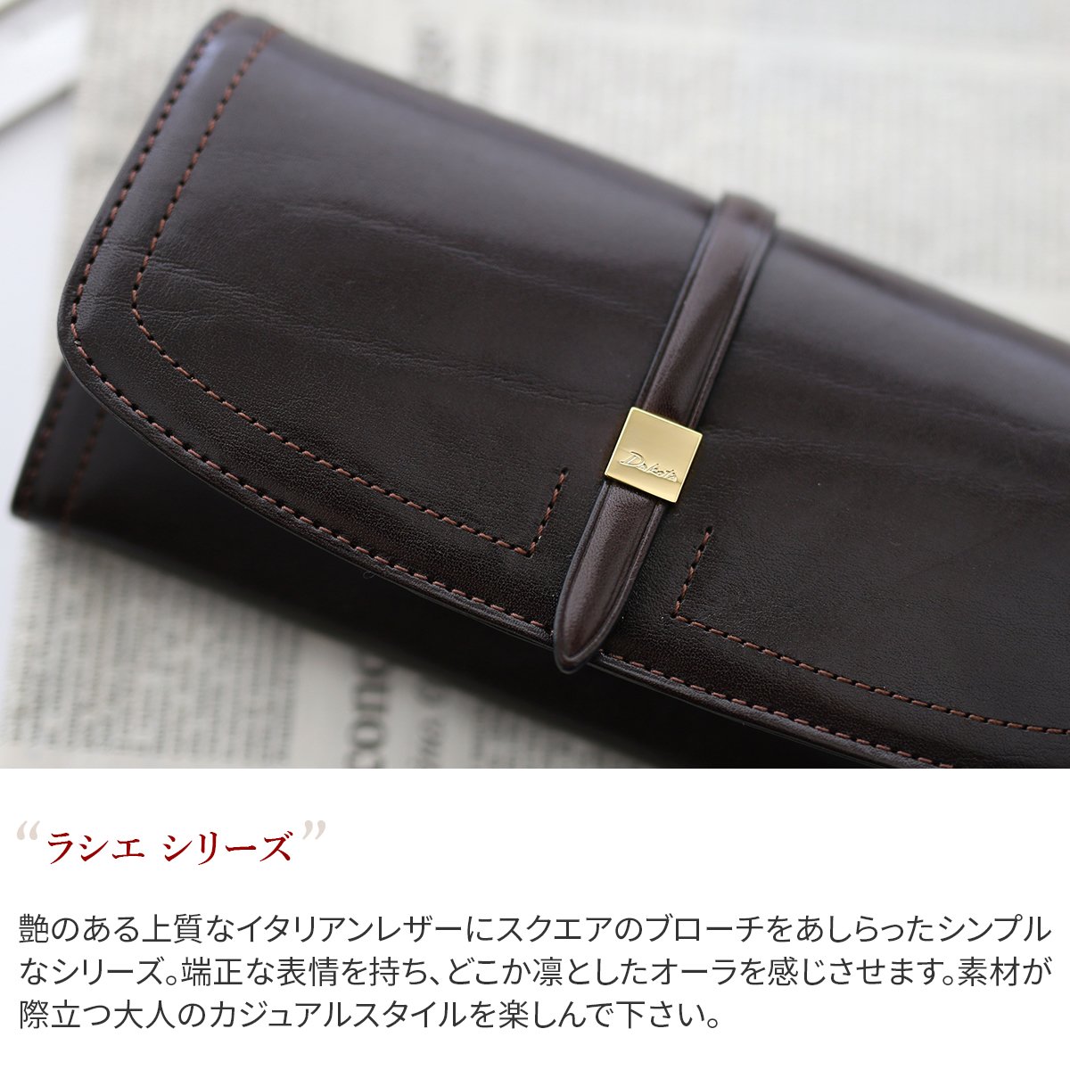 A simple series featuring a square brooch to glossy fine Italian leather.