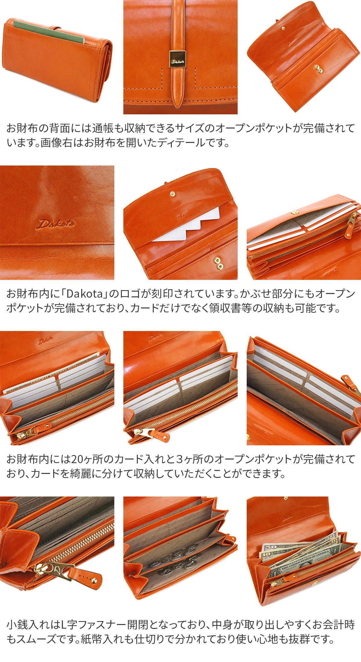 Functional aspects are also very substantial, such as a rich card pocket and coin purse with a partition and a bill holder.