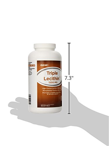 -. Binding : Health and Beauty -. Brand : GNC -. Feature : It may help the body to lsify fat / Provides dietary support for a healthy cardiovascular system / Provides support for a healthy nervous system function / Provides dietary support for a healthy liver Helps support normal choline levels during exercise / Derived from soybeans. -. Label : GNC -. Manufacturer : GNC -. PackageQuantity : 1 -. ProductGroup : Health and Beauty -. ProductTypeName : HEALTH_PERSONAL_CARE -. Publisher : GNC -. Studio : GNC -. Title : GNC Triple Lecithin 1200 Mg 180 Count