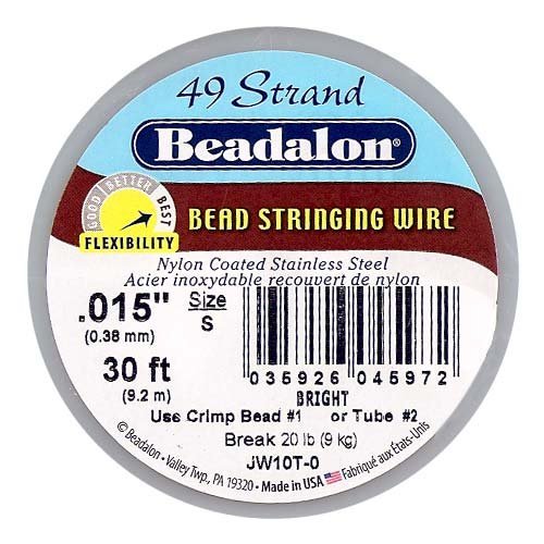 Beadalon 49-Strand Bead Stringing Wire, 0.015-Inch, Bright, 30-Feet