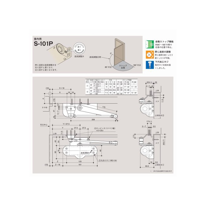 이 도어 맨은 실내복 도어 크로《―자》입니다.현관,부엌문에는 도어 맨S-102P시리즈를 이용 하십시오.