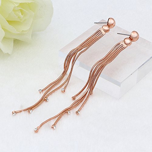-. Title : Kemstone Fashion Jewelry Rose Gold Long Tassel Dangle Earrings for Woman,4.53"