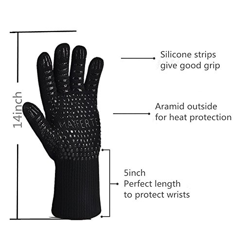 - MAYFERTE WARRANTY Buy with complete confidence, knowing that if you're not happy with the top performance of these bbq gloves accessories, simply contact us and we'll refund or replace your set.
