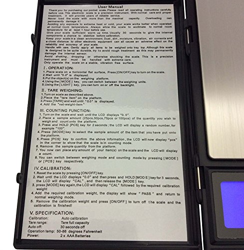 - ★ ALL IN ONE – Though many use it for food weight in the kitchen, you don’t have to stop there. This scale is great for weighing jewelry and small postal items, and is the perfect portable scale for reloading. Powered by two AAA batteries (not included) this weight scale is not only versatile in it’s uses, but long lasting too.