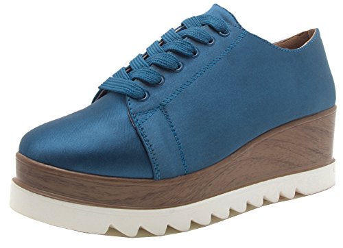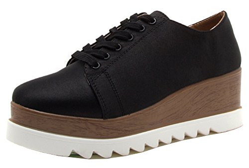 Qupid Women's Lace-Up Wood Platform Flatform Wedge Fashion Sneaker Oxford Shoe