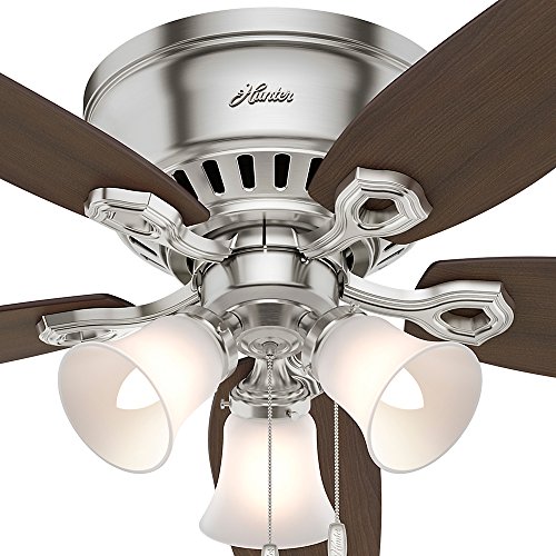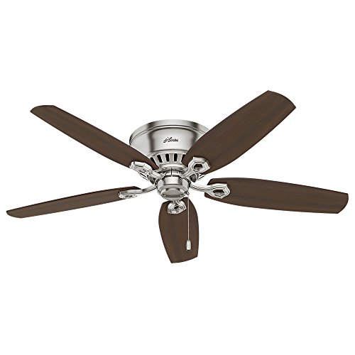 The builder fan is a mainstay in the hunter product line and now rooms with low ceilings can showcase one of our best-selling fans! the casual, traditional style will compliment your room without overpowering it. With 52-inch blades, a variety of finish options and the ability to install with or without the light kit, this fan is flexible enough to fit almost any large space you choose.