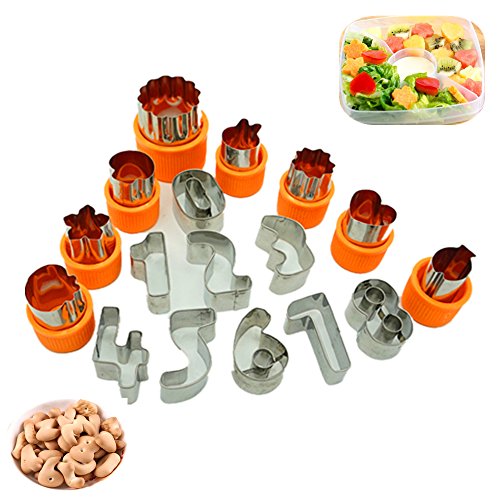 Stainless Steel Vegetable Cutter Shapes Set (17pcs) Vegetable Fruit Cookie Cutter Mold and Biscuit Cutters Set Numbers 0-9 - Cute for Fun Food