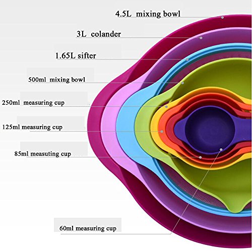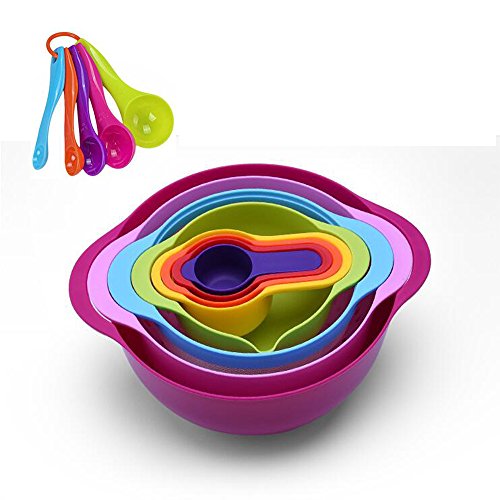 GOODEN 13 Pieces Mixing Bowl Set With Nesting colorful Measuring Cups Spoons sifter for Baking Cooking