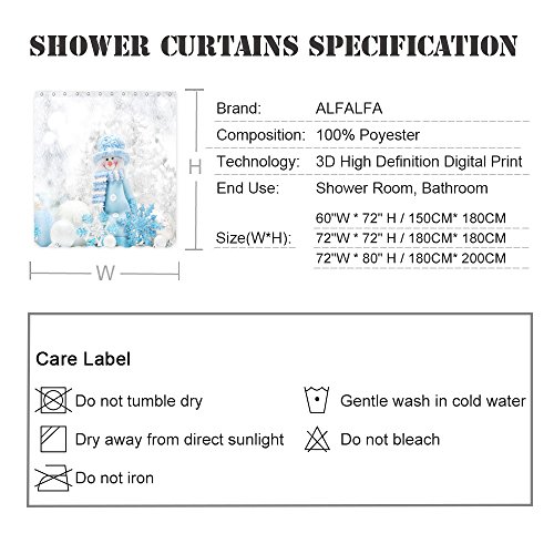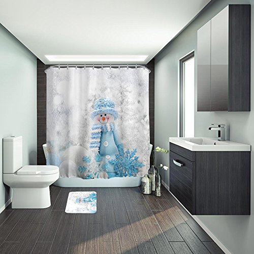 ALFALFA Merry Christmas Home Decor Polyester Fabric Bathroom Shower Curtain 72"W x 72"H (180CM x 180CM) - Blue Hat Snowman