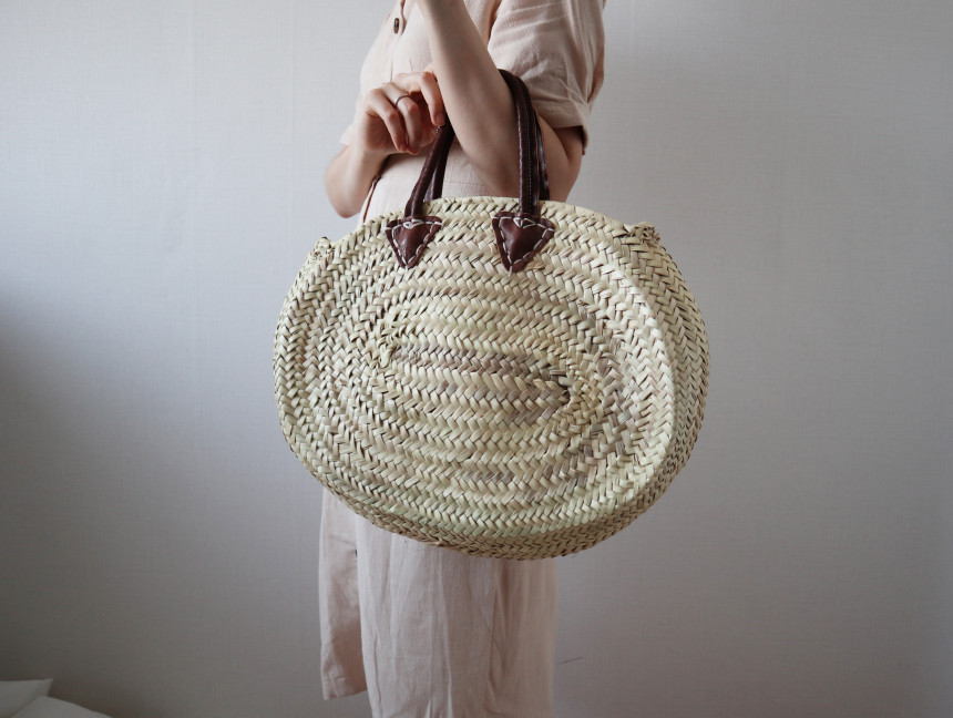 아무래도 동남아시아 라피아백들보단 가격대가 있지만 그만큼 고퀄리티라 소장가치가 있는 가방이예요. 동그란 모양의 라피아백으로 탄탄하고 깊이도 있어 왠만한 물건은 거뜬히 다 들어가요. 손잡이 부분은 소가죽으로 튼튼하게 만들어졌어요. 가방과 손잡이는 박은질로 단단하게 고정되었구요. 안감은 따로 없지만 워낙 짜임자체가 빈틈없이 깔끔해서 큰 불편함 없이 쓸 수 있어요. 한 해만 들고 마는 가방이 아니라 오래도록 편하게 들 수 있는 가방이랍니다. 휴가지에서도 좋고 데일리백으로도 손색을 없을거예요. ;) ※소재와 핸드메이드 제품의 특성상 사이즈도 조금씩 다를 수 있습니다. 이는 불량이 아니므로 예민하신 분들은 신중한 구매바랍니다.