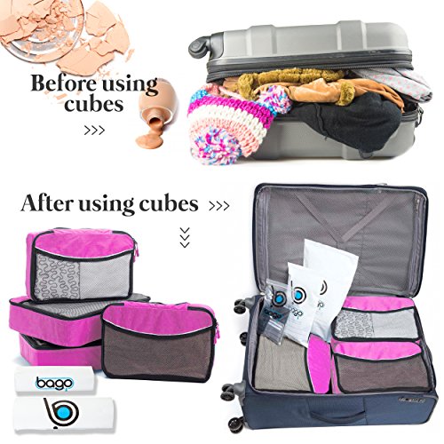 SAVE TIME AND STRESS finding your items and packing your luggage especially when you have a plane to catch, the packing cubes help you get done in a jiffy with different color cubes and a see through mesh top.