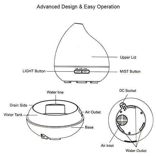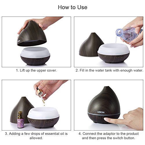 Essential Oil Diffuser- Adding a few drops of essential oil into the water tank is allowed. Please choose 100% pure essential oil for better aromatherapy effect.