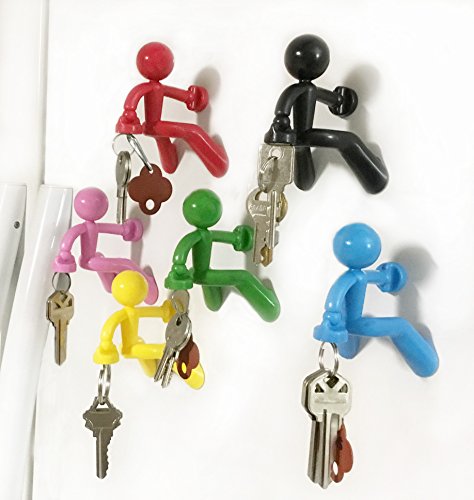 Cafolo~ 6 pcs Magnetic Man Refrigerator fridge magnets Creative Magnetic door whiteboard Mount Keys Holder (Blue,Green,Yellow,Black,Red,Purple)