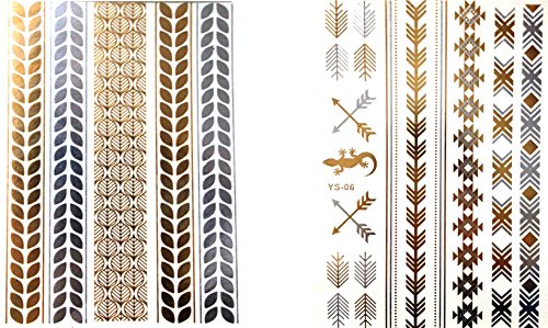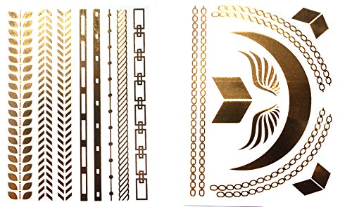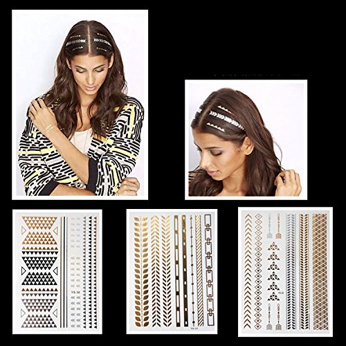 PuTwo 10 Sheets Temporary Tattoos Golden Metallic Hair Tattoo Body Tattoo Removable Waterproof Tattoo Party Supplies A01