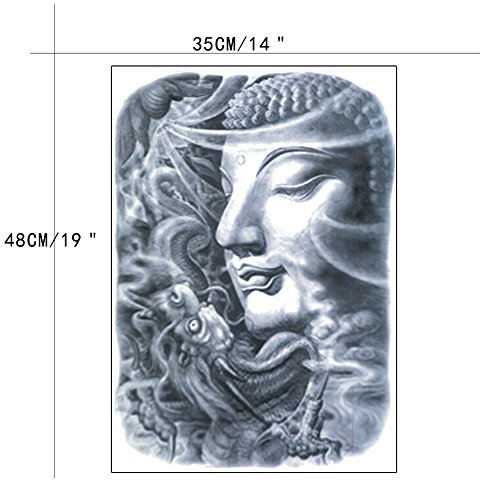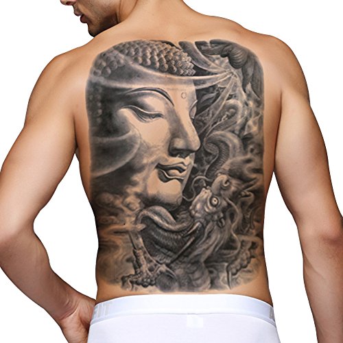 TAFLY Full Back Temporary Tattoos Extra Large Shakyamuni Cassock Tathagata Design Waterproof Body Art Transfer Tattoos Sticker Black 2 Sheets