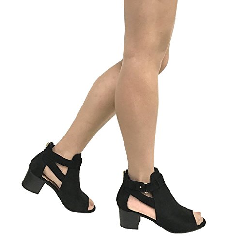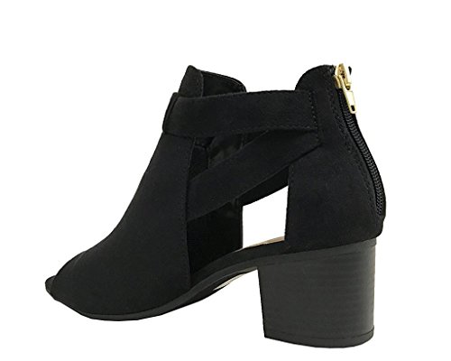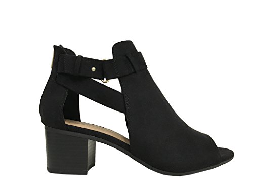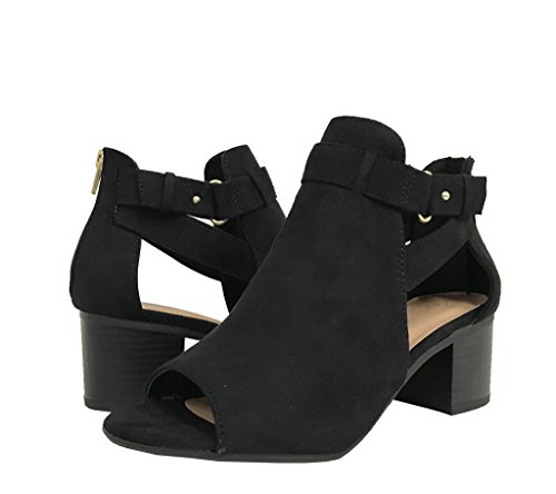 Product DescriptionLustacious Women's Invest Cut Out Side Strap Stacked Heel Ankle Bootie with Back Zipper0