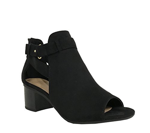 City Classified Women's Cutout Side Strap Mid Black Chunky Heel Fashion Ankle Bootie Boots