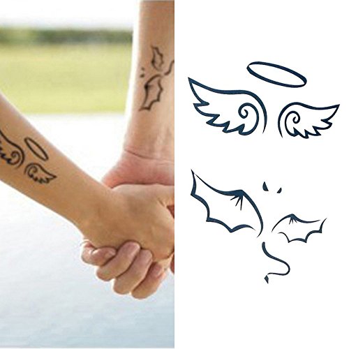 Oottati Small Cute Temporary Tattoo Angel Demon Couple Arm (Set of 2)