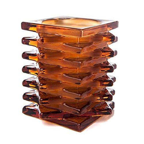 Stacked Glass Amber Candle Holder (3.5x3.5x4 inches)