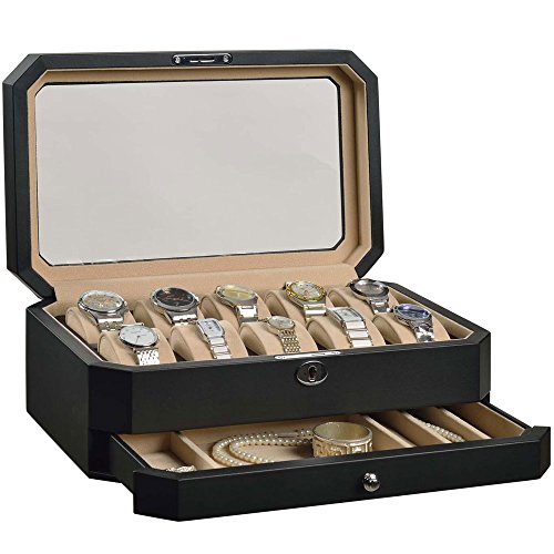 - With Room for 10 Watches in the Top Section and a Compartmentalized Bottom Drawer, the Watch Box is More than Just a Watch Box. It's a Place to Securely Store Your Most Treasured Pieces.